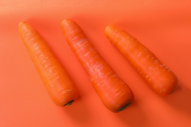 βカロテンが多く含まれている食品として有名な人参は100gあたりの含有量は、皮付きの場合生でも茹でたものでも6900μg。